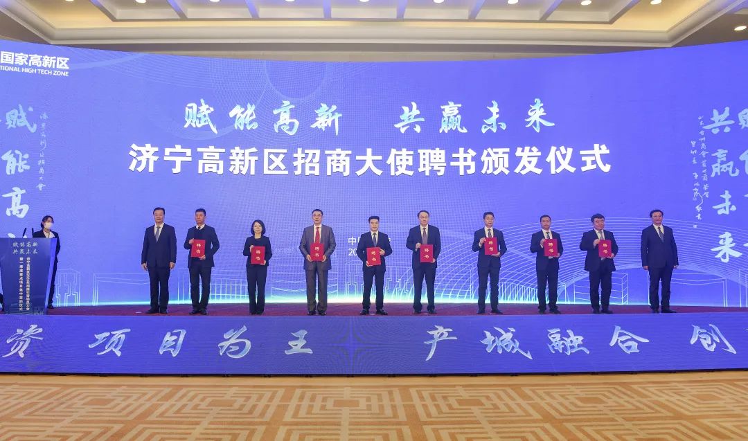 会上,市委副书记、济宁高新区党工委书记陈成华代表济宁高新区为辰欣科技集团有限公司董事长兼总经理杜振新颁发聘书,特聘杜振新为济宁国家高新区招商大使。