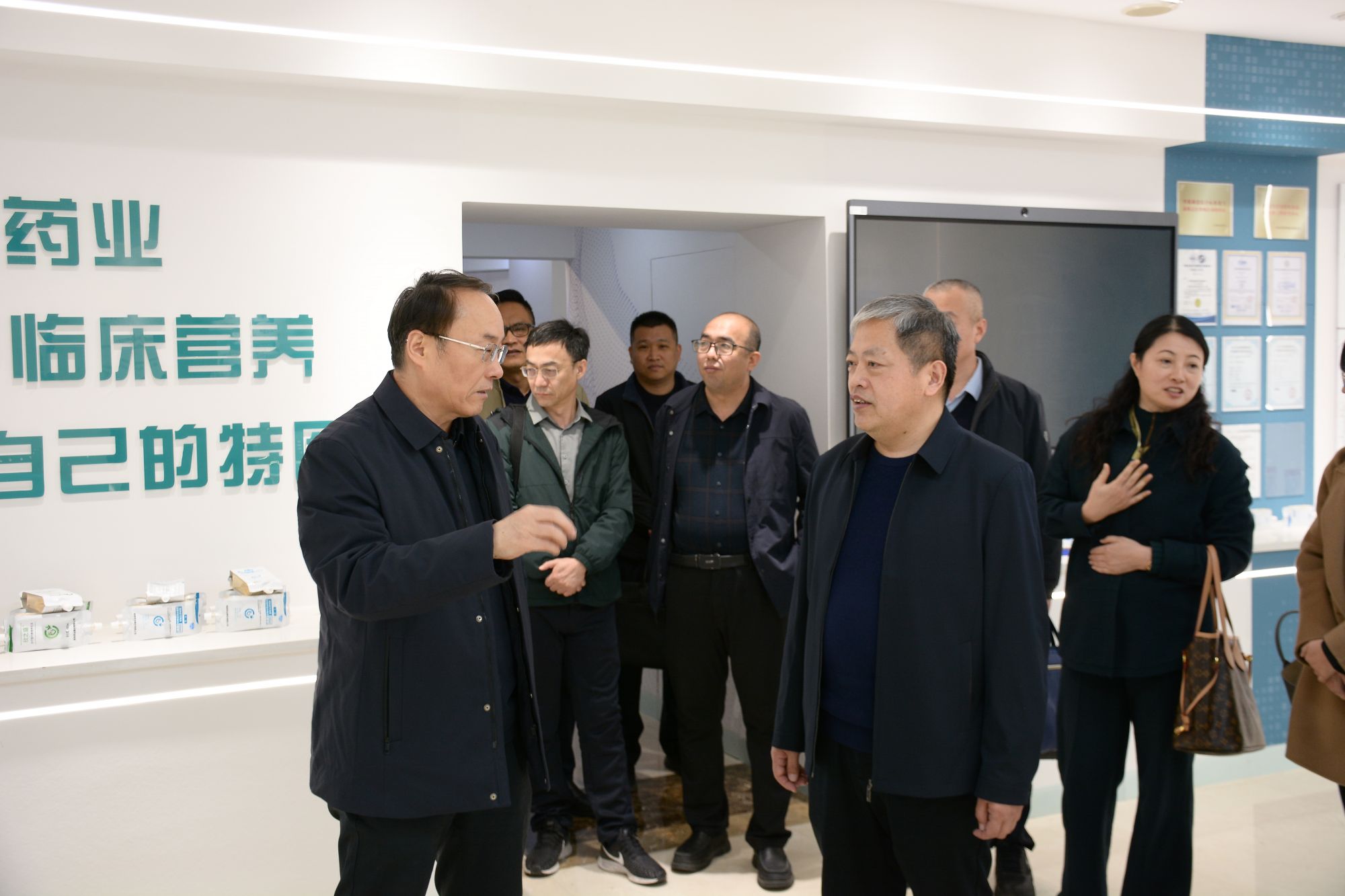 在企业文化展厅,林炳勇一行通过历史影像、图文展板,系统了解了辰欣药业五十余年发展沿革,以及公司从仿制药生产到高端制剂研发转型的历程;在重点产品展台,调研组一行询问了核心产品在抗肿瘤、抗感染、慢病治疗等用药领域的竞争优势及市场占有率;在研发创新板块,调研组一行详细查看了在研的创新药项目以及特医食品项目进展,对公司"临床需求导向+产学研协同"创新模式给予高度评价。