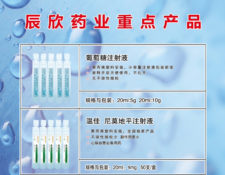 经广泛调研和多方位的临床使用比对,通过系统的研究摸索,我公司开发出的新型注射用PP安瓿系列产品,该类安瓿使用方便,不会划伤操作人员,开启时避免异物混入注射液造成污染,运输方便,而且不易破碎;同时开发出对应的塑料安瓿注射剂的包装物,该包装物密封包装,避免塑料安瓿注射剂暴露于环境中,避免塑料安瓿注射剂的易折处沾染灰尘和微生物,从而避免折断塑料安瓿时,微生物落入药品中。我公司基于这两项技术,申报相关专利,并取得授权,同时也开发出多个PP安瓿产品,其中葡萄注射液和尼莫地平注射液均已获得国家食品药品监督管理总局的批准。
