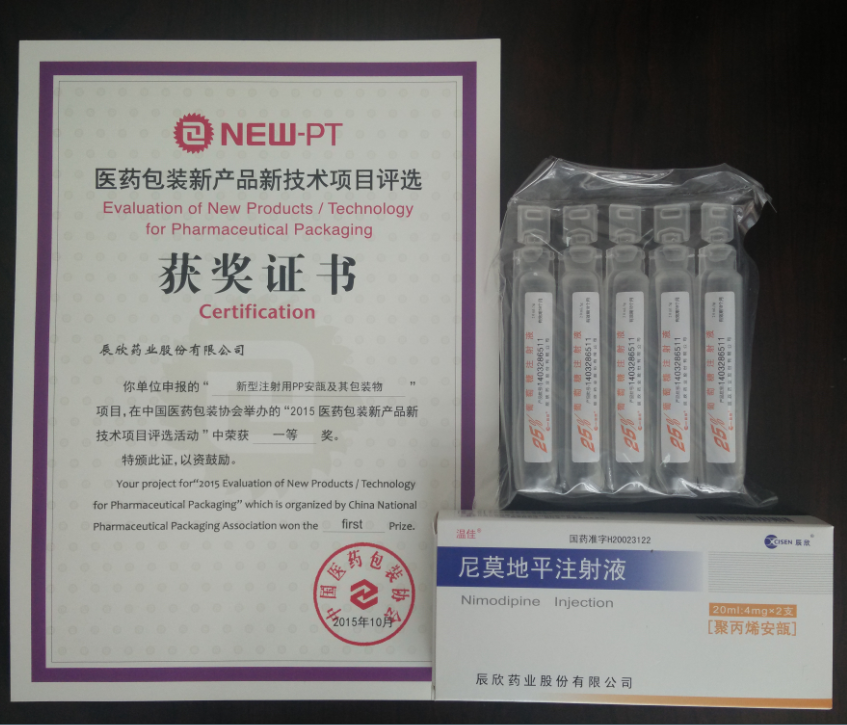 辰欣药业“新型注射用PP安瓿系列产品”荣获 “2015医药包装新产品新技术”一等奖