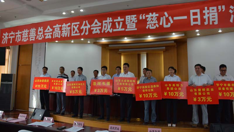 辰欣药业向济宁市慈善总会高新区分会捐款10万元