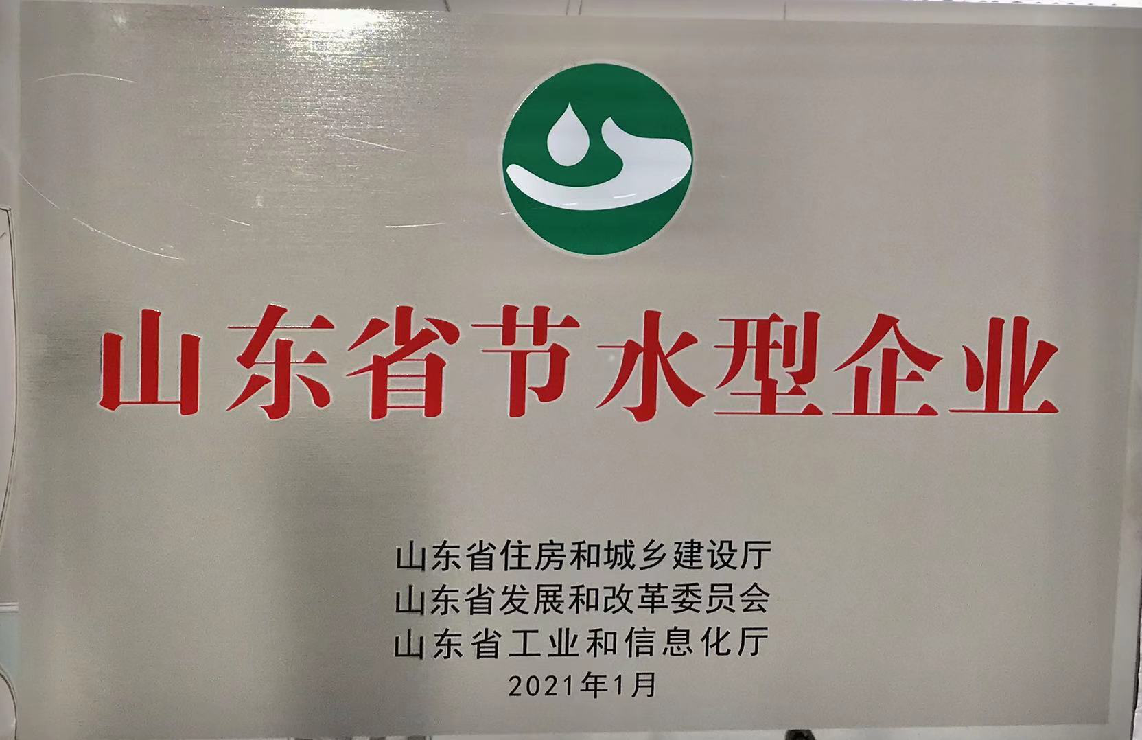 近日,公司获得由山东省住房和城乡建设厅、山东省发改和改革委员会、山东省工业和信息化厅联合颁发的“山东省节水型企业”荣誉称号。