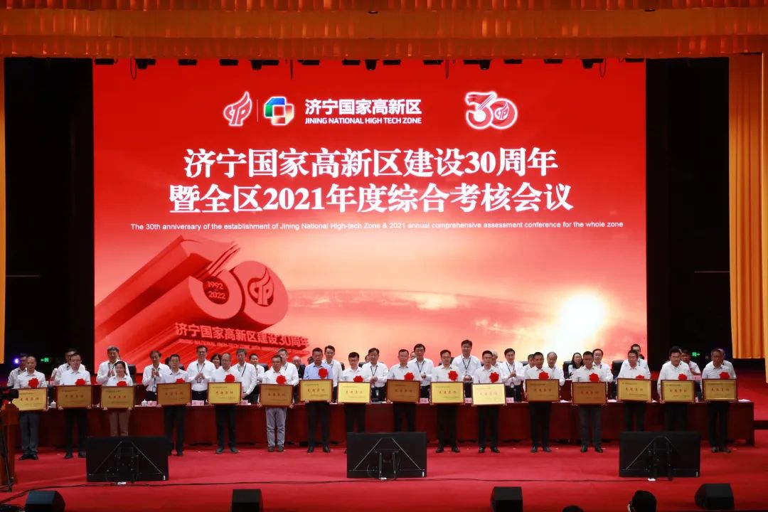 5月30日上午,济宁国家高新区建设30周年暨全区2021年度综合考核会议顺利召开。会议系统回顾了高新区30年奋斗历程,分析和继承宝贵经验,全面总结2021年度工作,对济宁高新区建设30周年先进集体以及2021年度全区优秀企业、优秀企业家、领军人才(团队)等进行了表彰。