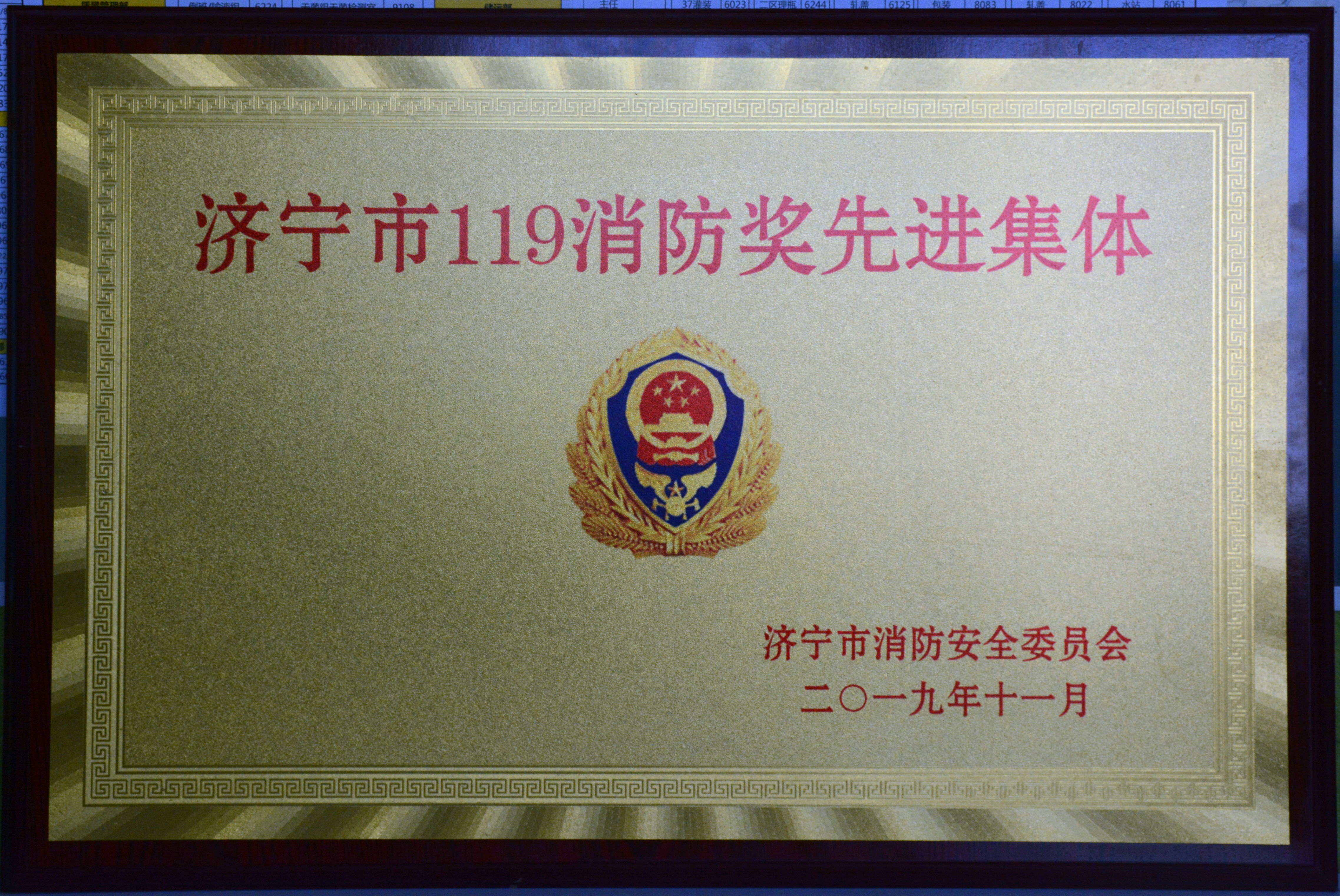 公司荣获“济宁市119消防奖先进集体”称号